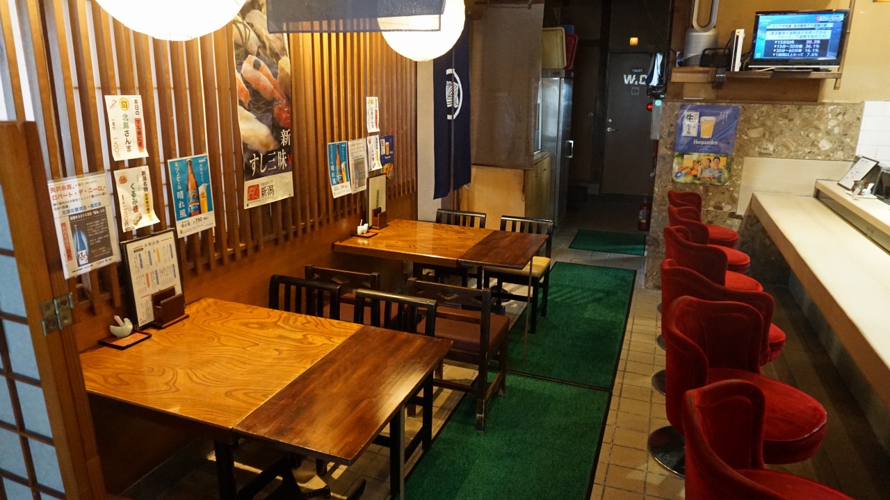 店に入ると握りたてを直ぐに食べれるカウンター席(8席)と、車椅子の方も大丈夫なテーブル席(4名×2)が。