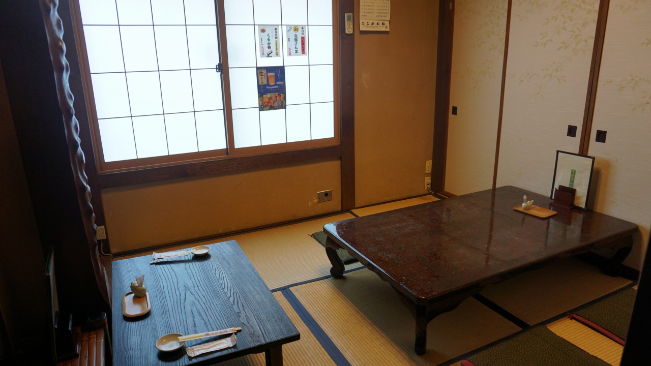 今回はテーブル席の仕切りを挟んで隣の小上がりに通してもらいました。