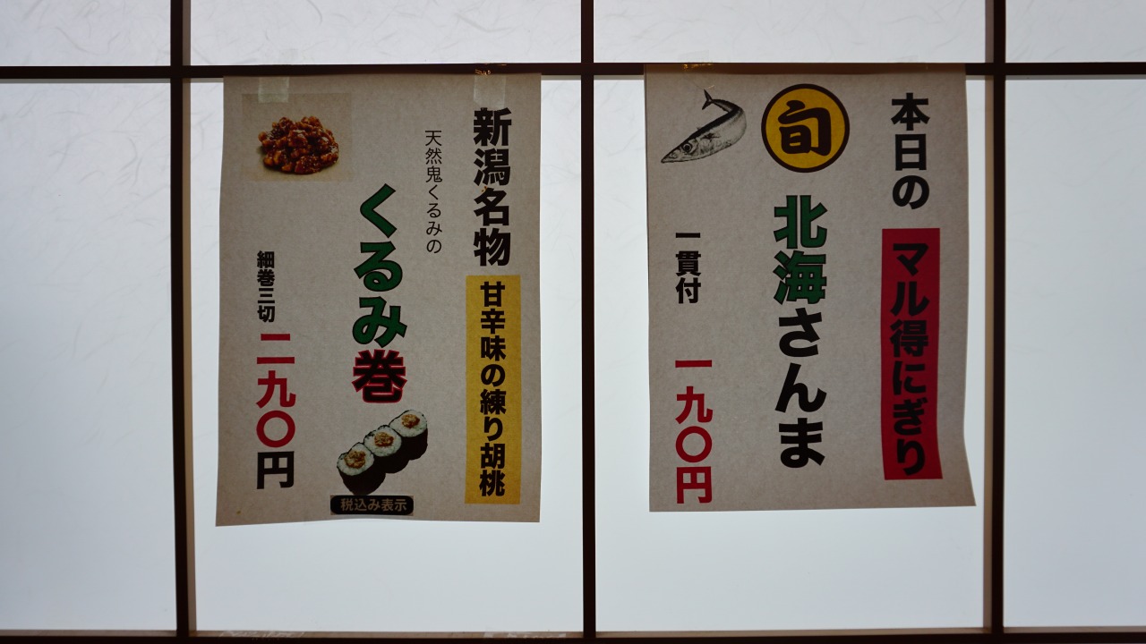 そしてこちらは、新潟限定の「くるみ巻」と旬の「北海さんまの握り」です。