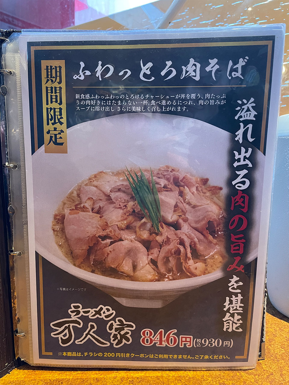 期間限定 ふわっとろ肉そば+味玉トッピング、ネギ玉めしを注文しました!