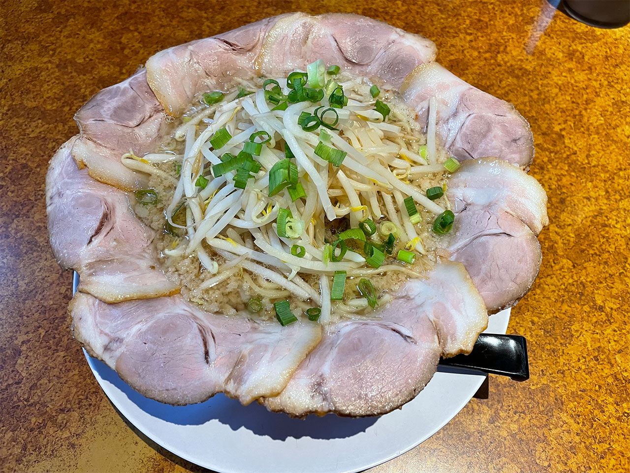 見てください!!薄切りチャーシューがどんぶりいっぱいに乗っている「花びらちゃーしゅう」。