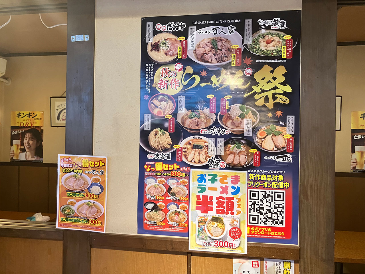 そして店内を見ると、万人家を含む「だるまやグループ」全体でらーめん祭をやっているポスターを発見👀
