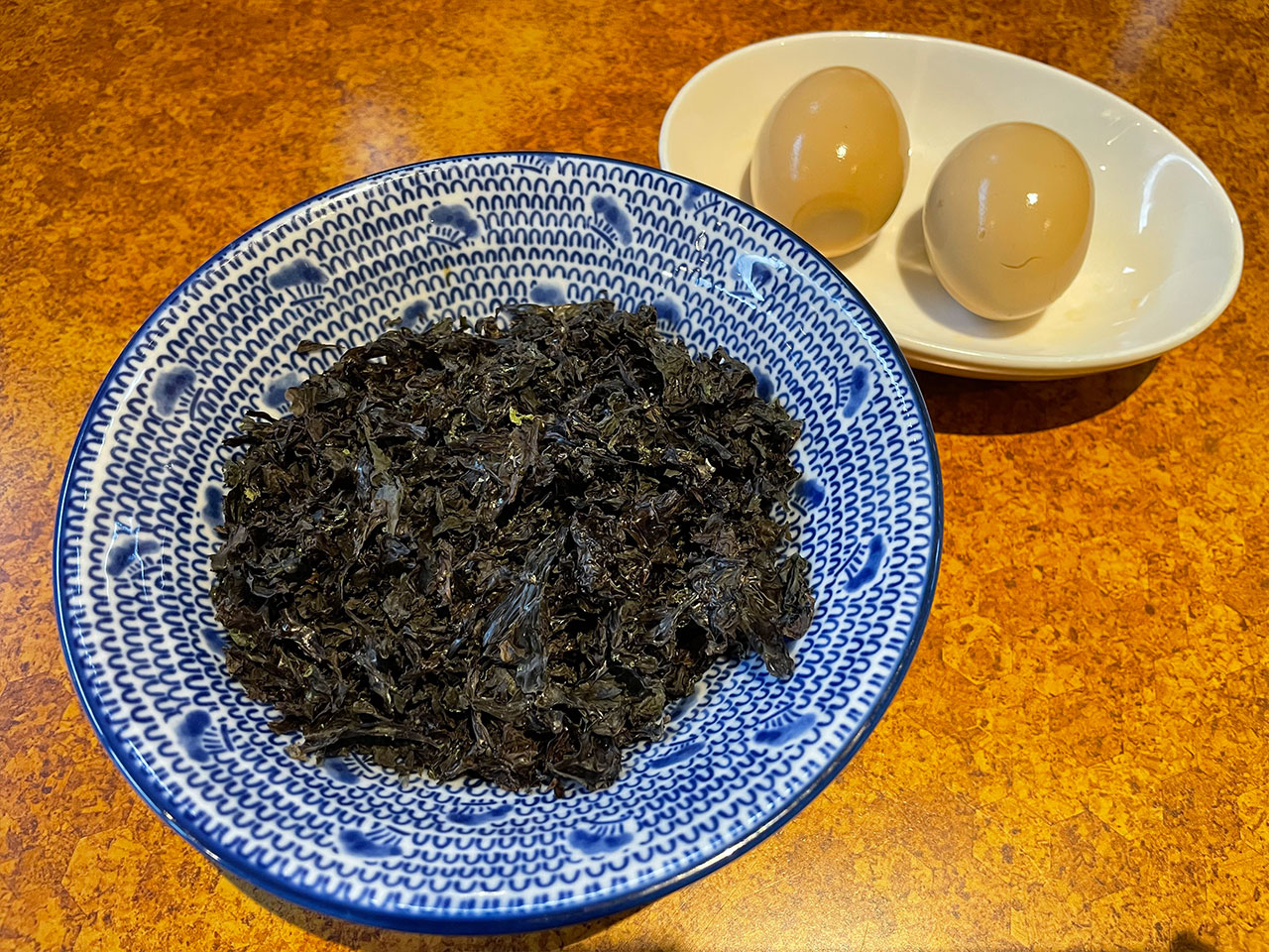 今回はトッピングに味玉を注文しましたが、席にはゆでたまごもあります。